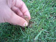 南側フェンス沿いの芝生のメンテを行いました。人力でエアレーション後、夏芝を差し込んで見ました。