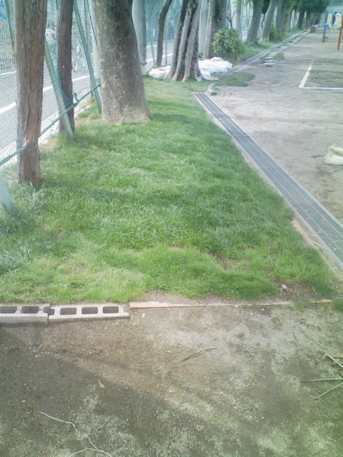 養生シートをはがしたら、充分復活していました。伸びきった芝を刈り込み、元気でない部分に養生シートを掛けました。