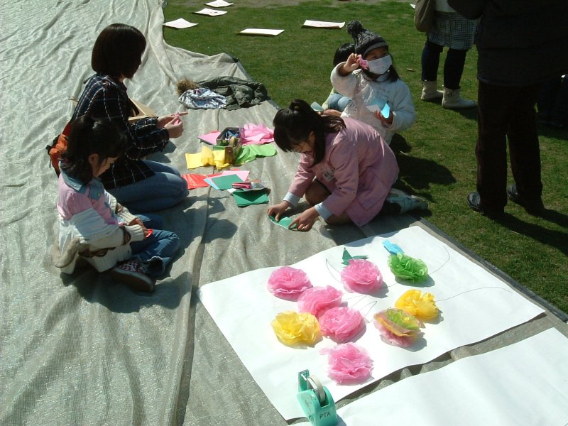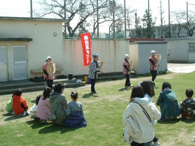桜の木の下で野点が行われました。ちょっと寂しい桜でしたが。前校長・区役所の方・中村消防団の団長・そして町内会の方もお見えになりました。中村中学校茶道部のお手前が披露されました。