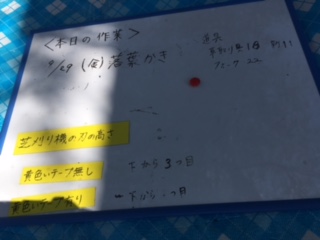 ウィンターオーバーシードの種まき作業も行うので、芝生面の掃除もしました。
