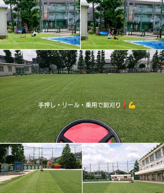 今日は芝生面以外のところを点検。今週の雨による湿気のためかキノコが群生しています。グランド土の部分も水たまり後に使用したための荒れも結構あります。今年の2,3月にスプリンクラー交換工事を行ったあとの土の整備のせいなのか。